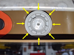 - Twist the flood port either direction, and at the same time pry with a plastic trim tool to separate the flood port from the HV battery.