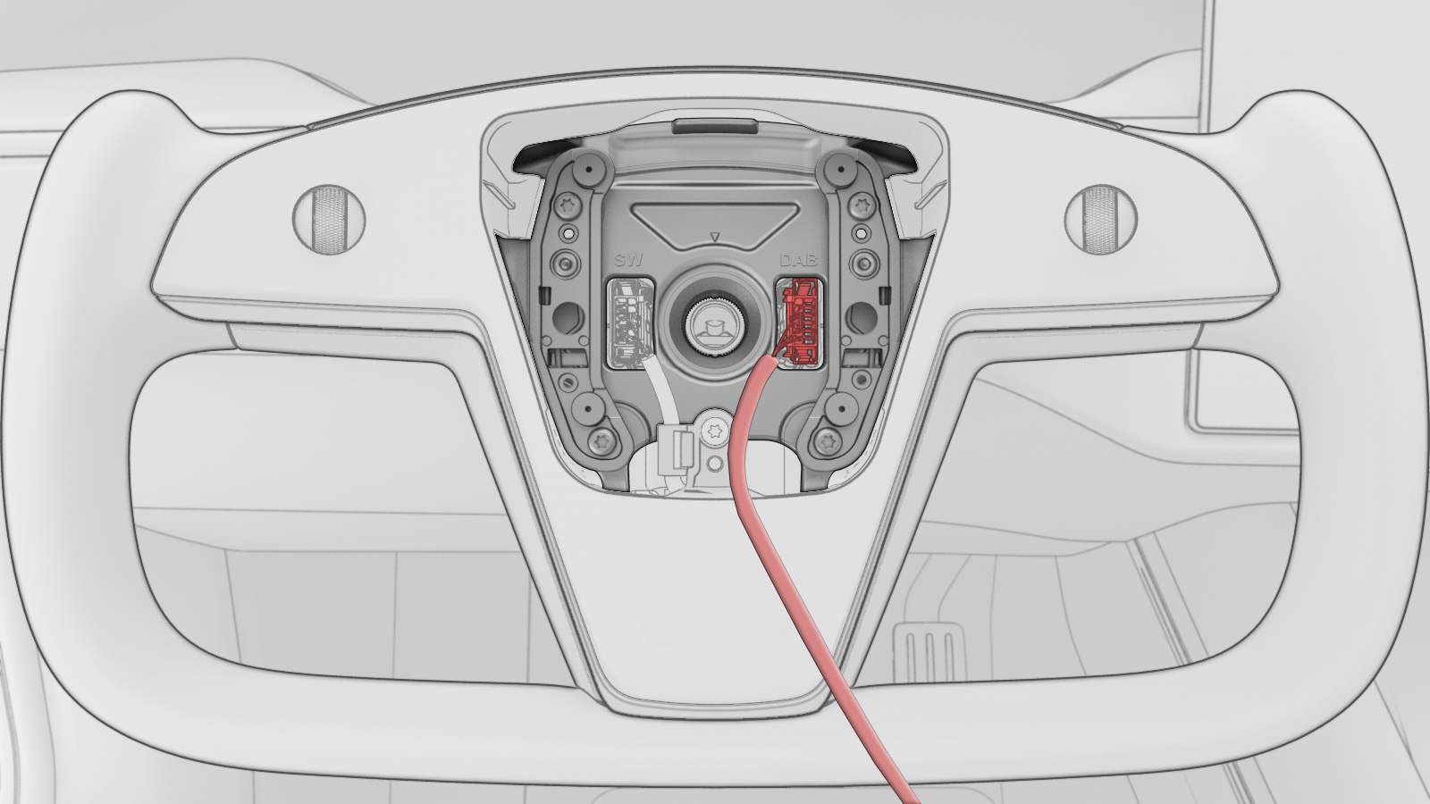 - Perform a light pull test on the RH side of the driver airbag to verify that it is properly secured to the steering yoke.