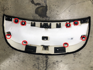 NoteStart to install one side by clipping into the Body In White (BIW) bracket, then fasten the clip in the center, and then the rest of the trim clips to the BIW bracket.