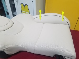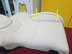 - Secure the bottom portion of the RH 2nd row seat inner bolster trim onto the bolster substrate.