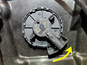 - Position the LH rear door pressure sensor on the closeout panel, and then rotate clockwise to attach the sensor to the closeout panel. Verify the sensor is locked in place.