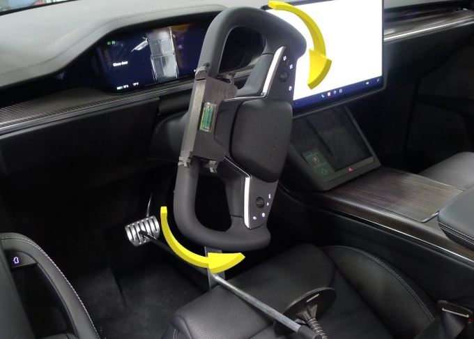 - Retire el bloqueo del volante, el depresor del pedal de freno y el nivel del volante, y coloque el vehículo en el modo de estacionamiento.