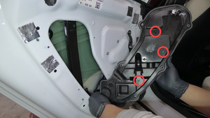 - Desmonte el regulador de la ventanilla trasera izquierda de la puerta.