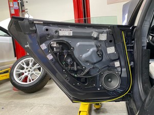 - Instale los parches de butilo que cubren las aberturas de la puerta trasera izquierda.