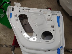 - Desmonte el cristal de la puerta trasera izquierda del conjunto de la puerta.