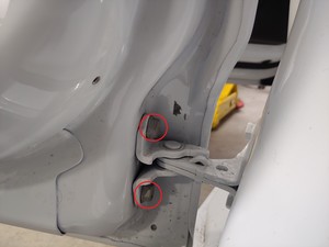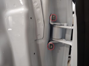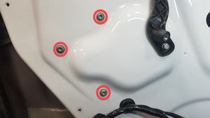 Quite los pernos (6 uds.) que sujetan el panel de cierre de la puerta trasera izquierda al conjunto de la puerta.
