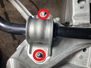 | Tuercas (4 uds.) que fijan la barra estabilizadora delantera al conjunto del bastidor auxiliar delantero |
