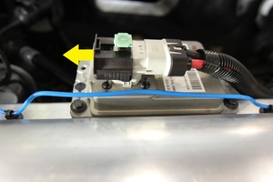 Retire el clip que sujeta al intercambiador de calor de la unidad de tracción trasera la manguera que va del inversor al enfriador de aceite.