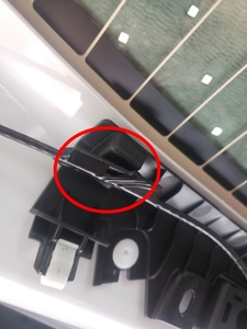 - Fije los clips (6 uds.) que sujetan el mazo de cables del sintonizador a la carrocería en bruto del portón trasero.