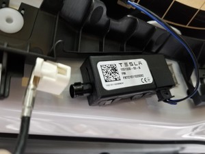 - Enchufe el conector del amplificador de la antena FM izquierda y, a continuación, fije la pestaña de bloqueo.