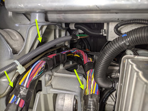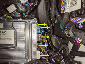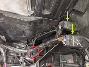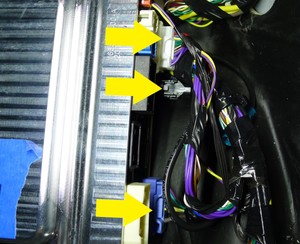 Enchufe los conectores del maletero delantero en el lado derecho del ordenador del coche