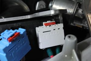 Nota2 conectores. Fije primero el FRL. Coloque la conexión de la batería de baja tensión y empuje el bloqueo del conector negro hacia dentro para fijarlo. Acople la pestaña de bloqueo verde cuando esté completamente asentada