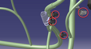 Fije el mazo de cables del maletero delantero a la zona de los pies derecha