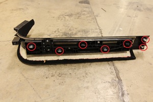 Retire las fijaciones que sujetan el conjunto del airbag de rodilla izquierdo al vehículo