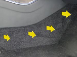 - Pliegue la moqueta principal izquierda para colocarla en su posición
