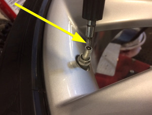 - Gire el neumático y la llanta de modo que el rodillo superior quede a 100 mm de la parte delantera de la válvula