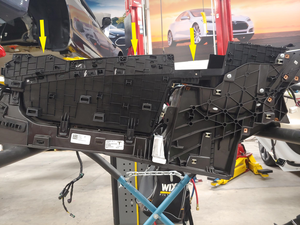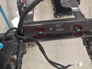 - Coloque el mazo de cables en el bastidor de la consola central y fije los clips (14 uds.) que sujetan el mazo de cables a la consola central.