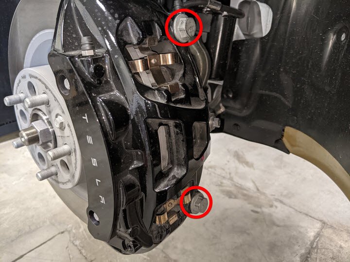 Apply a thin layer of Tesla-approved brake caliper lubricant to the brake pad contact
