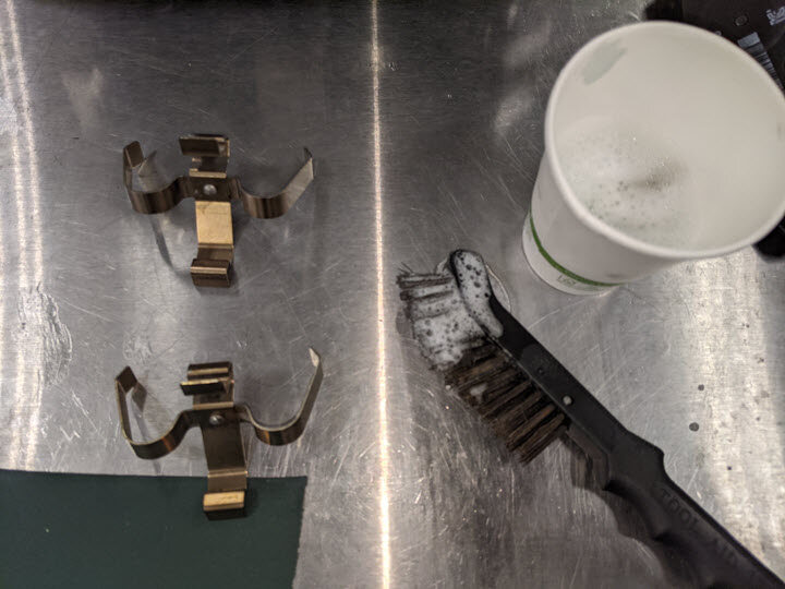 - Use a brush and soapy water to clean both anti-rattle springs.