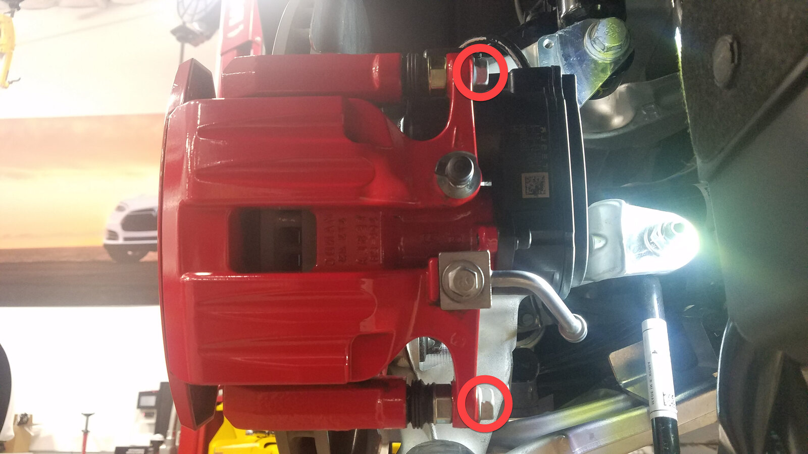 bolts (x2) that attach the caliper to the knucle.
