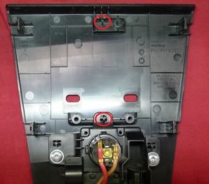 Retire los tornillos (2 uds.) que fijan la toma de 12 V al panel de servicio de la consola central.