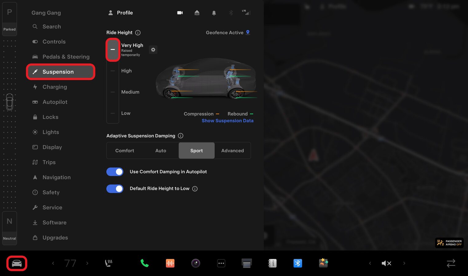 NotaUsing center display > Controls > Suspension > ''Very High''