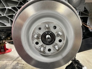 Si está instalado, retire y deseche el perno que fija el rotor del freno al buje.