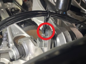 Apriete la tuerca del eje trasero izquierdo