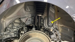 Retire el perno que fija el brazo de avance inferior trasero izquierdo a la mangueta