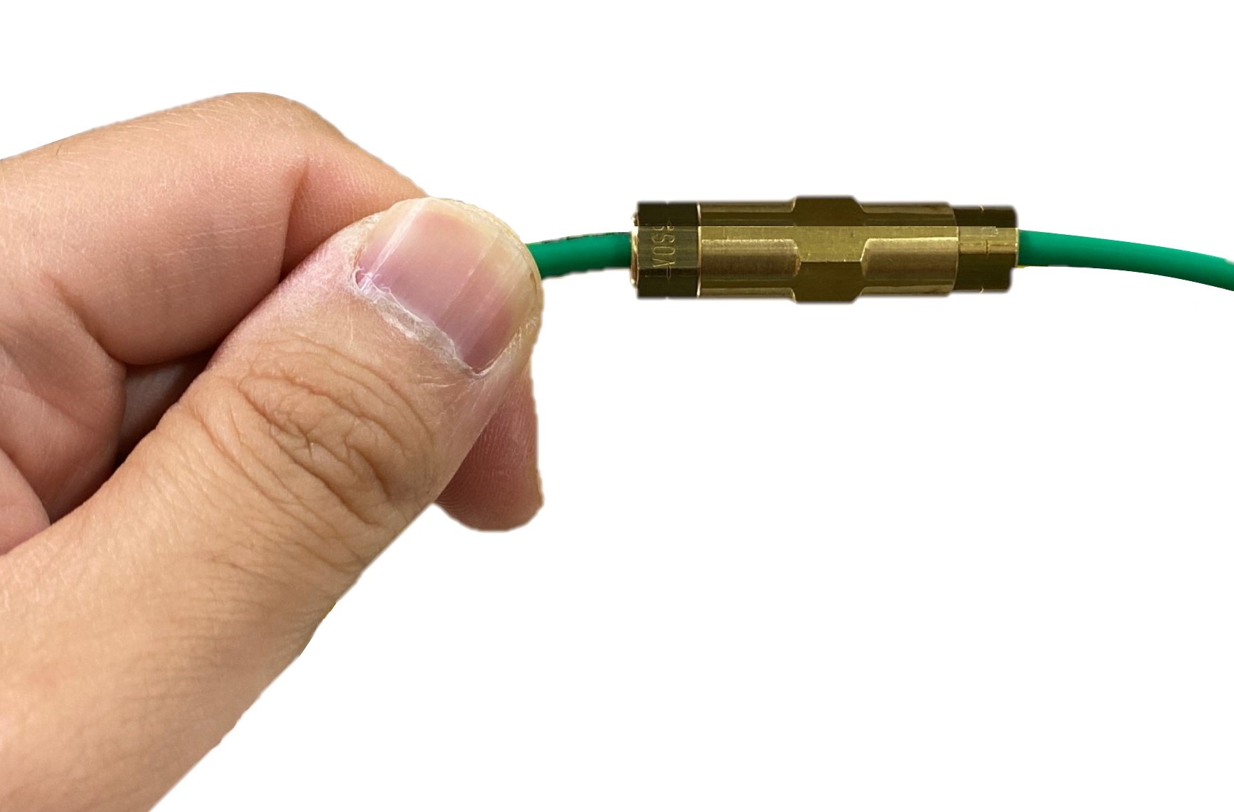 Retire y deseche el tapón blanco de cada extremo de la unión de metal VOSS y, a continuación, apriete ambos racores.