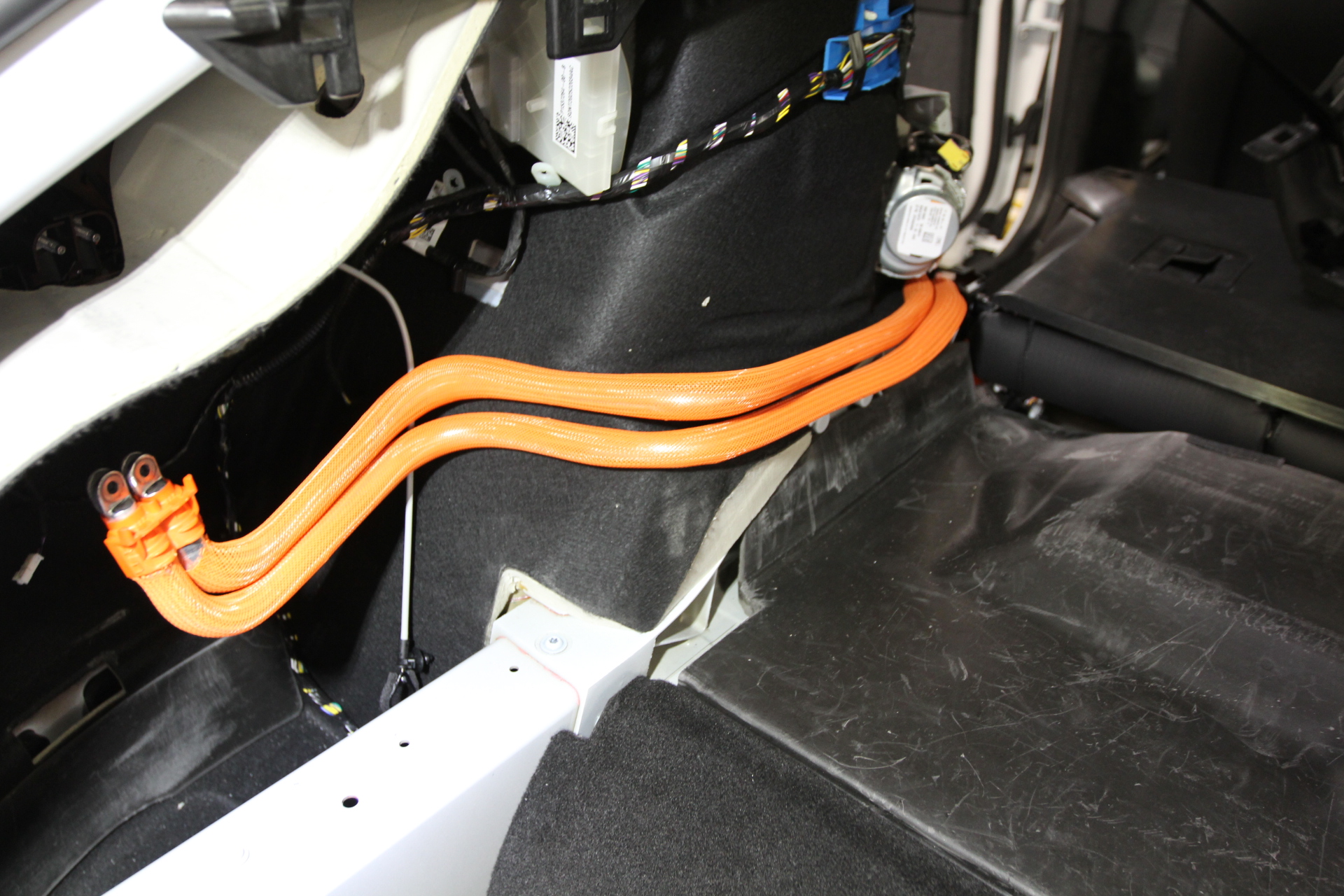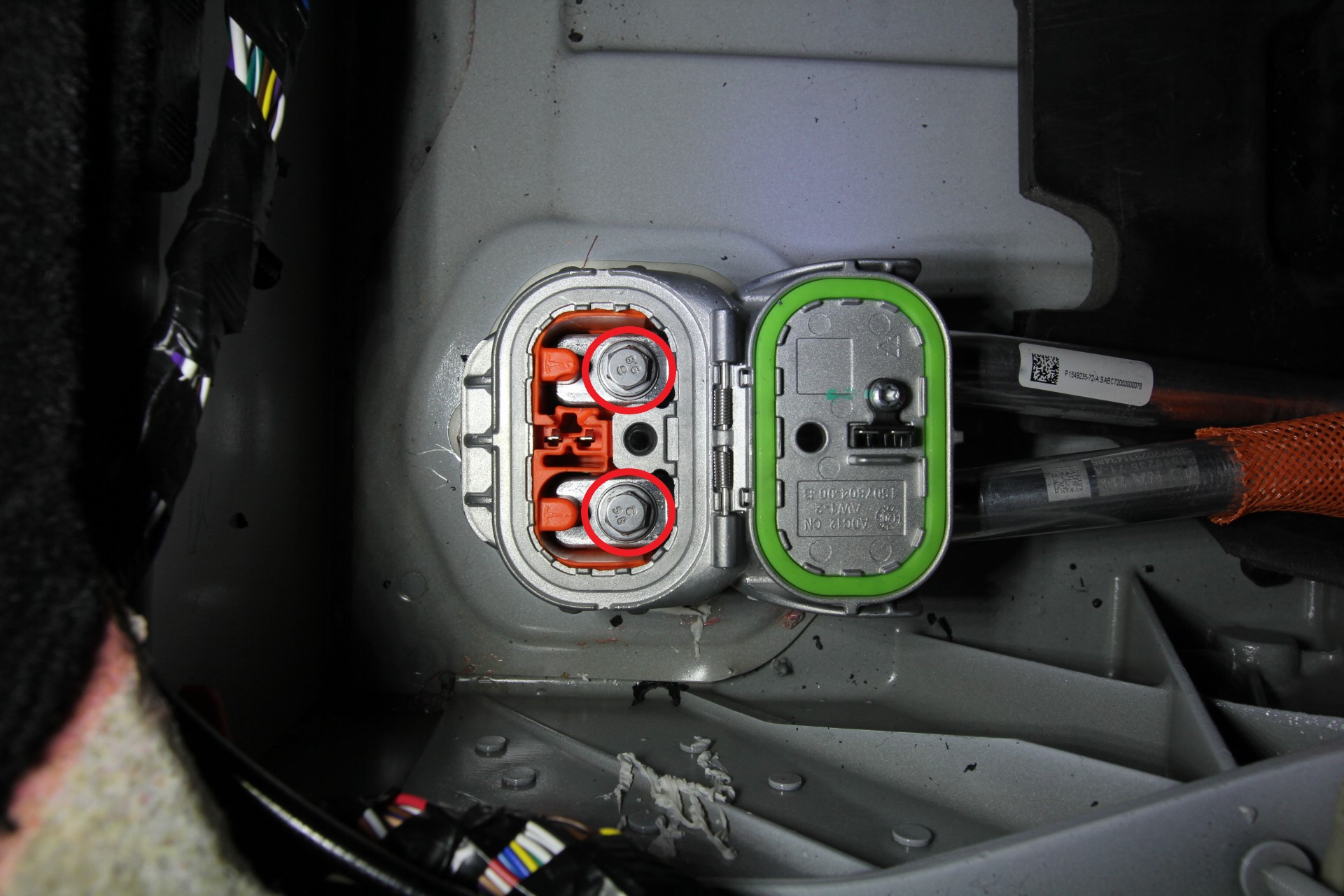 Solo los técnicos que hayan recibido formación en sistemas de alta tensión y hayan completado todos los cursos de certificación necesarios (si procede) pueden realizar este procedimiento. Siempre que se manipule un cable, barra colectora o conexión de alta tensión, deben llevarse equipos de protección individual (EPI) y guantes aislantes para alta tensión con una clasificación nominal mínima de 0 (1000 V). En la nota técnica TN-15-92-003 sobre los puntos de peligro de alta tensión