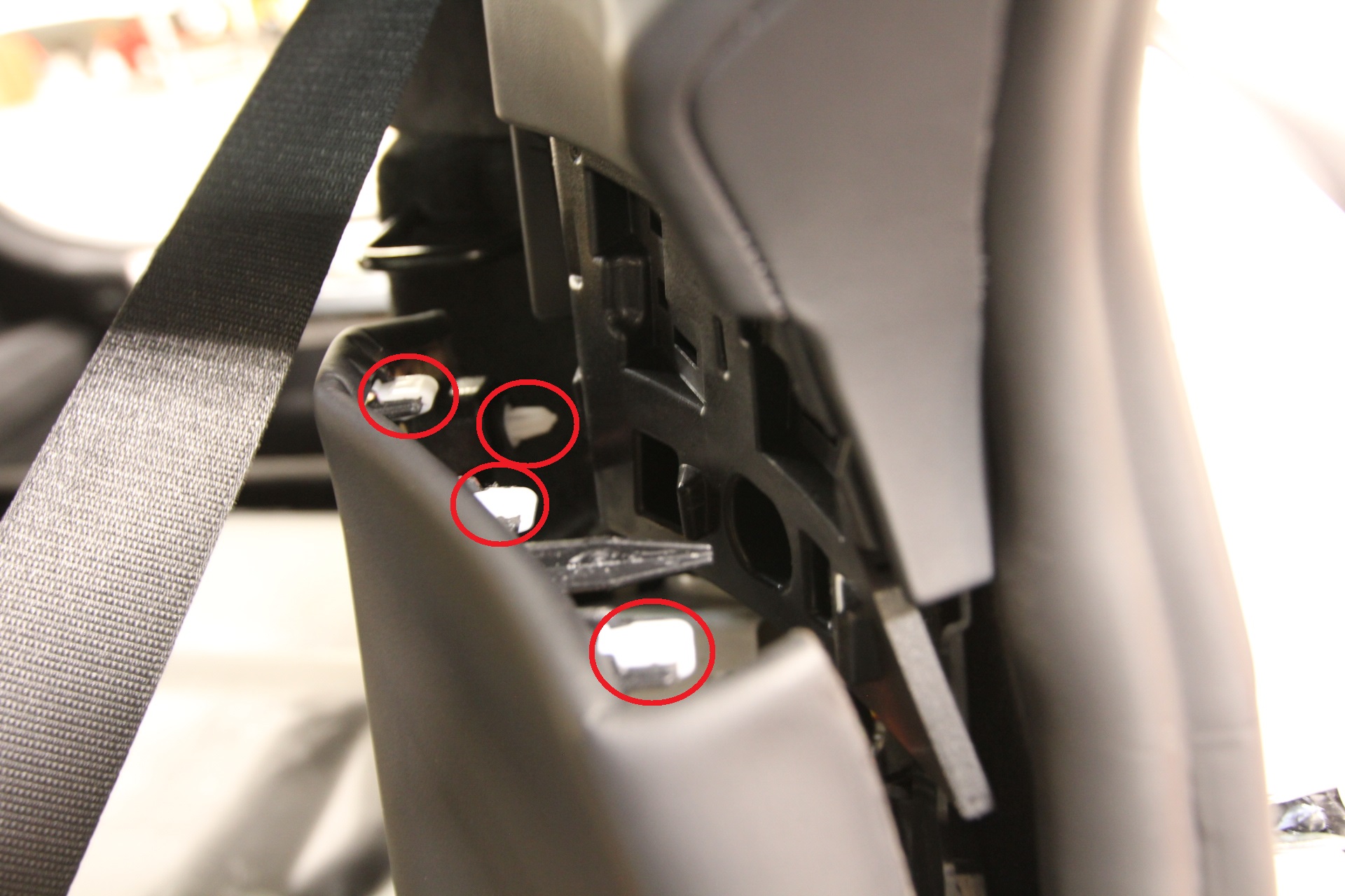 NotaEl guarnecido del pilar C superior izquierdo sigue sujeto al cinturón de seguridad.