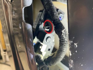- Enchufe el conector eléctrico del conjunto del cierre de la puerta delantera izquierda y, a continuación, acople el bloqueo del conector.