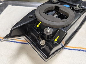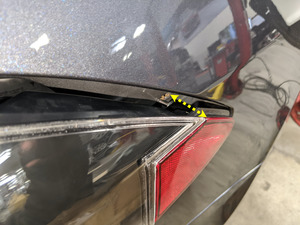 - Coloque las referencias en la puerta fija y, a continuación, coloque los tornillos (3 uds.) que fijan la puerta fija a la luz trasera derecha.