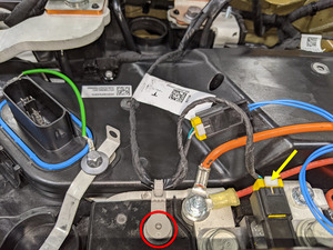 - Instale la cubierta de acceso delantera de la batería de alta tensión. Consulte Cubierta - Acceso delantero - Batería de alta tensión (Desinstalación e instalación).