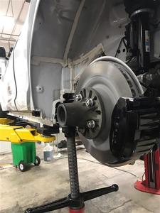 140 Nm (103.2 lbs-ft) - Baje y retire el soporte de debajo del adaptador del gato del buje.