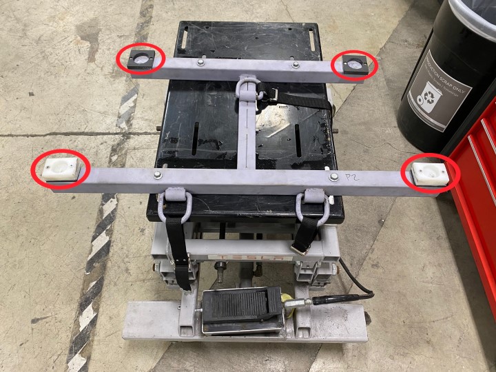 - Coloque el elevador del bastidor auxiliar debajo del bastidor auxiliar trasero.