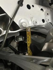 Ajuste el soporte de forma que la distancia vertical desde la parte inferior de la pieza fundida trasera izquierda hasta el centro del semieje trasero izquierdo sea de 85 mm +/- 5 mm.