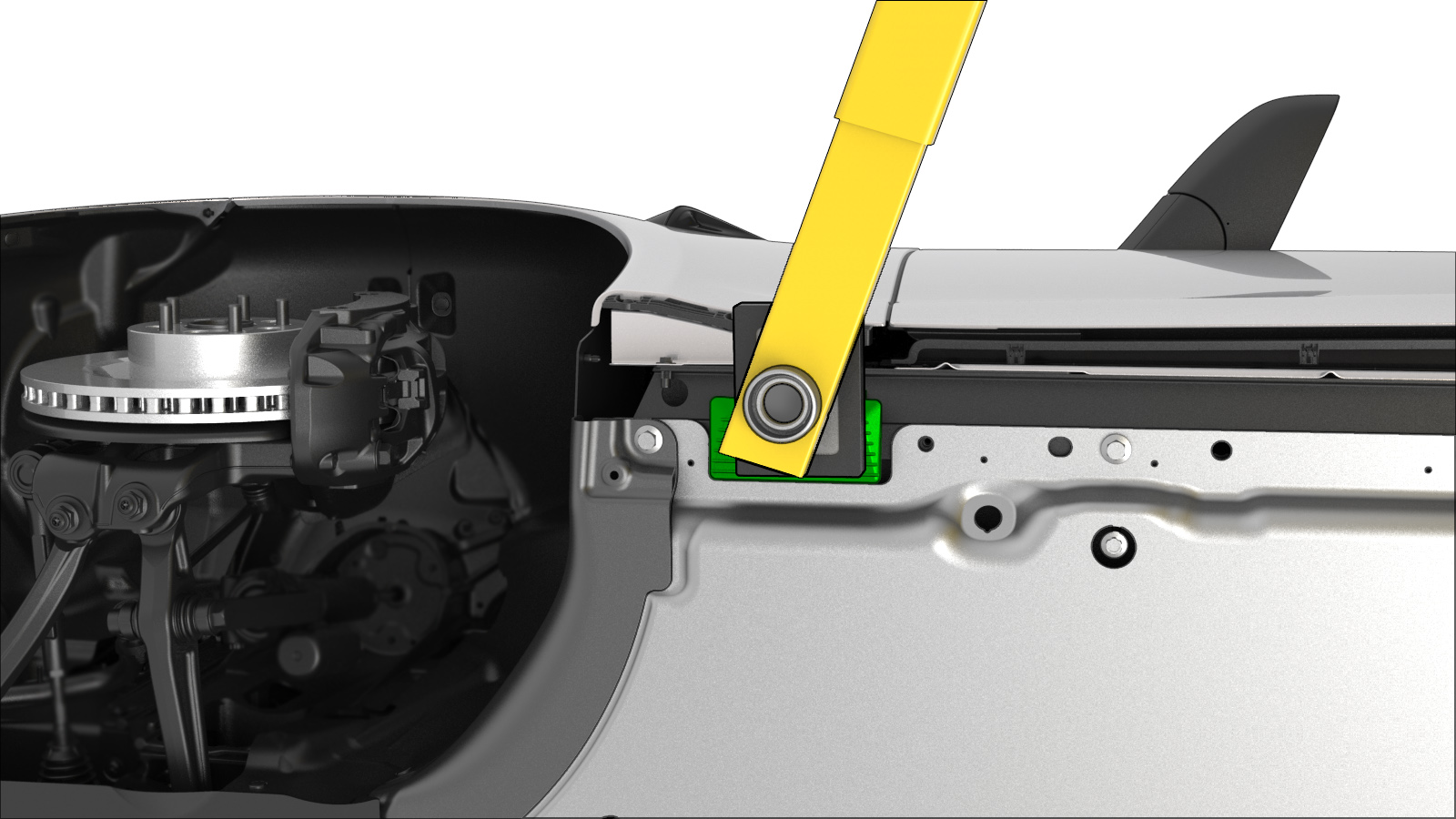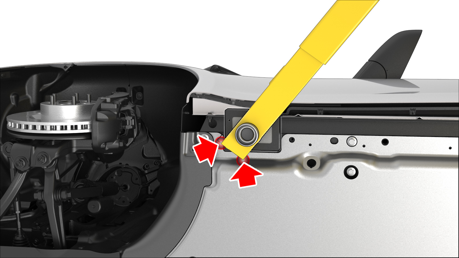 Figura 1. El brazo de elevación obstruye la separación de la batería de alta tensión del vehículo