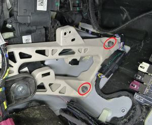 Quite los pernos (2 uds.) que sujetan el soporte de la base de pedales derecha a la carrocería.