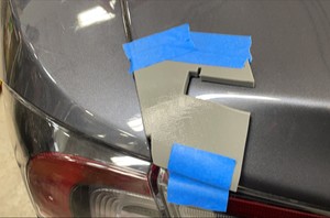 NotaAlinee las plantillas con los bordes del portón trasero y, a continuación, utilice cinta protectora para fijar las plantillas si es necesario.