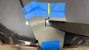 NotaAlinee con cuidado el alerón trasero con las plantillas y aplique presión desde el centro hacia fuera. Compruebe que el alerón está totalmente adherido al portón trasero.