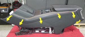 - Suelte los clips (17 uds.) que fijan el panel izquierdo de la consola central al conjunto de la consola central.