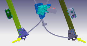 - Fije el regulador de la ventanilla delantera izquierda en los soportes superiores.