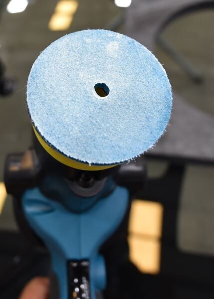 Install the polishing disk on the backer pad.