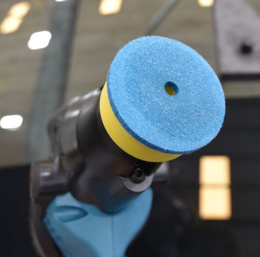 - Place the polishing disk flat on the glass.