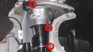 - Coloque los tres clips que fijan el mazo de cables del sensor de velocidad de la rueda delantera izquierda a la mangueta delantera izquierda.
