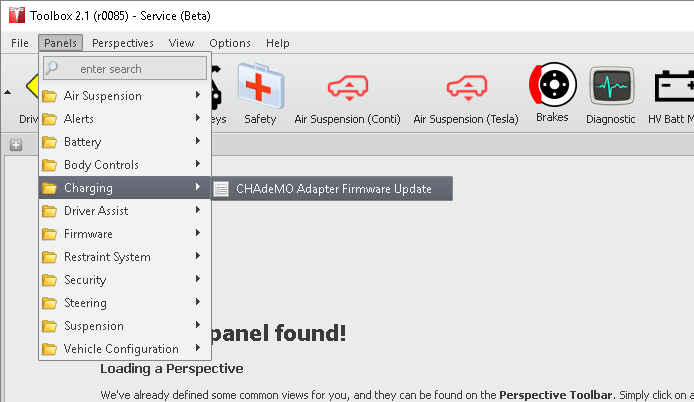 - En Toolbox 2, haga clic en y, a continuación, confirme que el plugin CHAdeMO está disponible y aparece en verde.