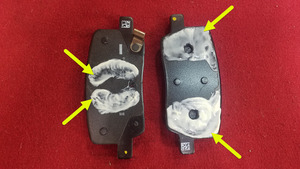 - Aplique una capa uniforme de lubricante Silaramic en los puntos de contacto de las pastillas de freno traseras izquierdas.