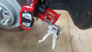 - Utilice un kit de extensión de pinzas o una herramienta similar para insertar con suavidad el pistón de nuevo en la pinza de freno trasera izquierda.